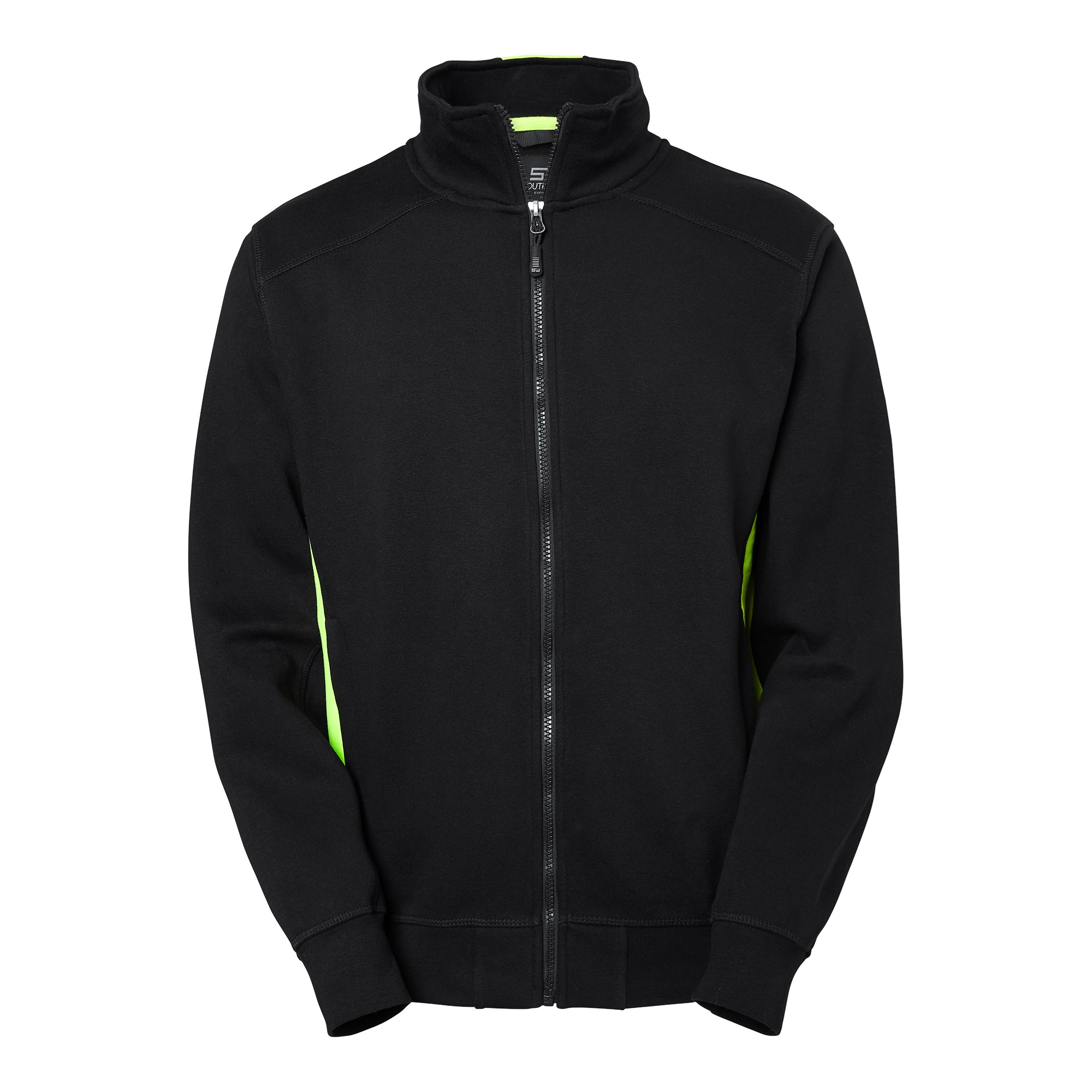 Collegejacka med borstad insida och avvikande paneler i sidan. Två rymliga frontfickor med dragkedja. Elastisk mudd i nederkant och vid ärmslut. Ett färgalternativ med förhöjd synbarhet finns.